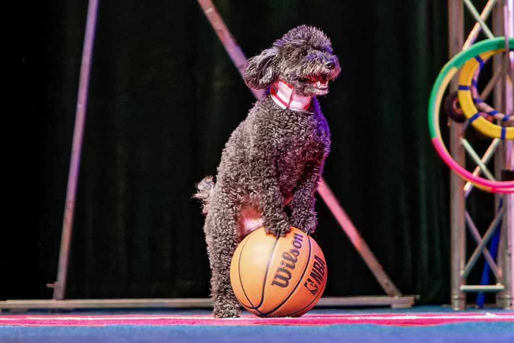 This show features a variety of stunts and acts — from climbing and diving off ladders, ninja-warrior-like stunts, doggy backflips, high-wire walks, comedic acts, balancing tricks, audience participation, and many other challenging, fun, and exciting surprises!