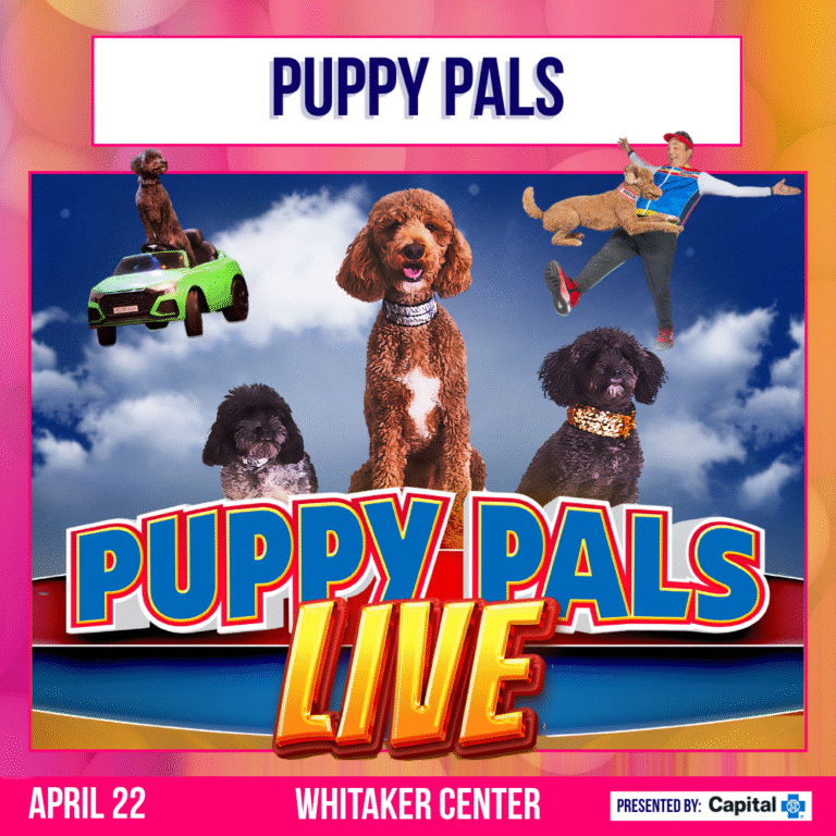Puppy Pals Live, the Action-Packed Comedic Stunt Dog Show, hits the stage at Whitaker Center on Wednesday, April 22!